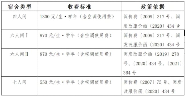 住宿费:按不同宿舍类型,每学年550-1300元不等,具体宿舍类型由学校统一安排;